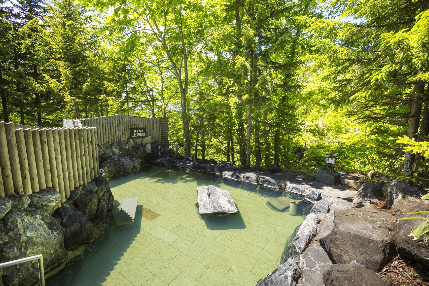 広々とした大浴場には木々に囲まれた露天風呂があり、北海道らしい豊かな自然を感じさせます。